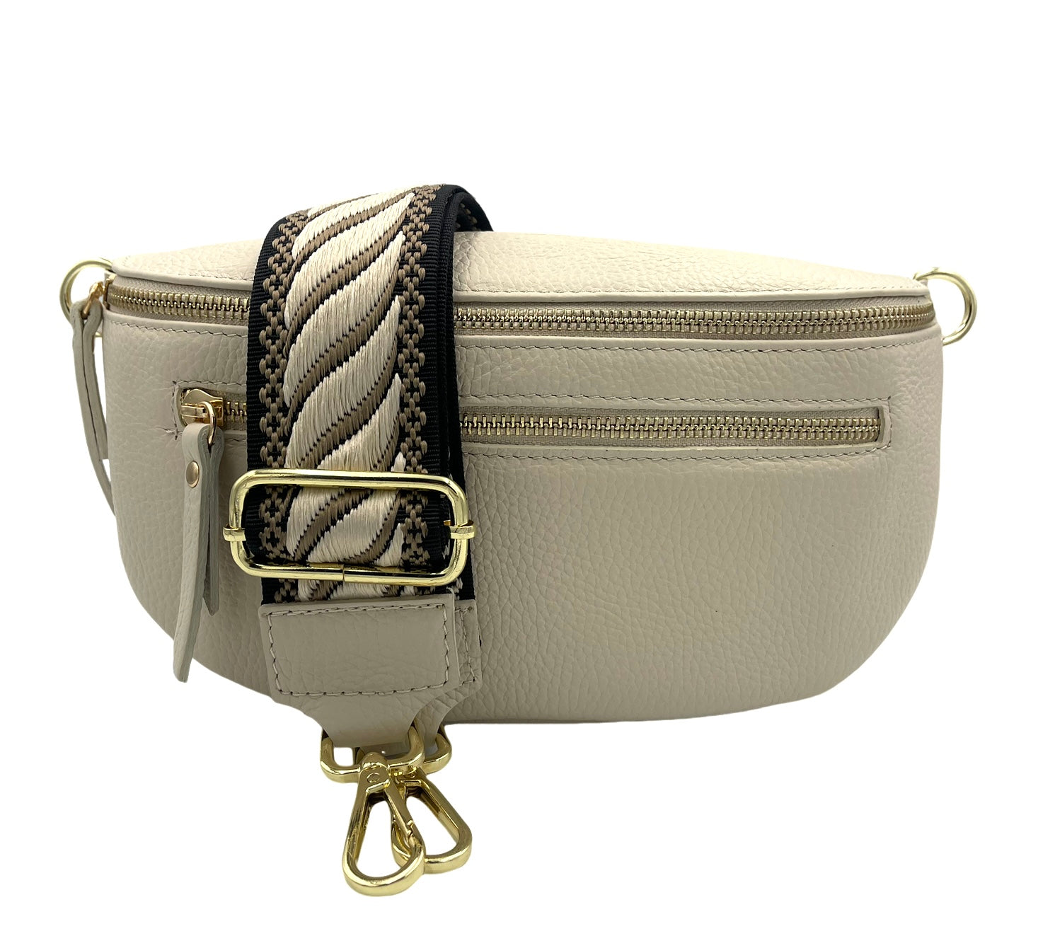 Sling Bag - cream double zipper with cream/blk/olive strap