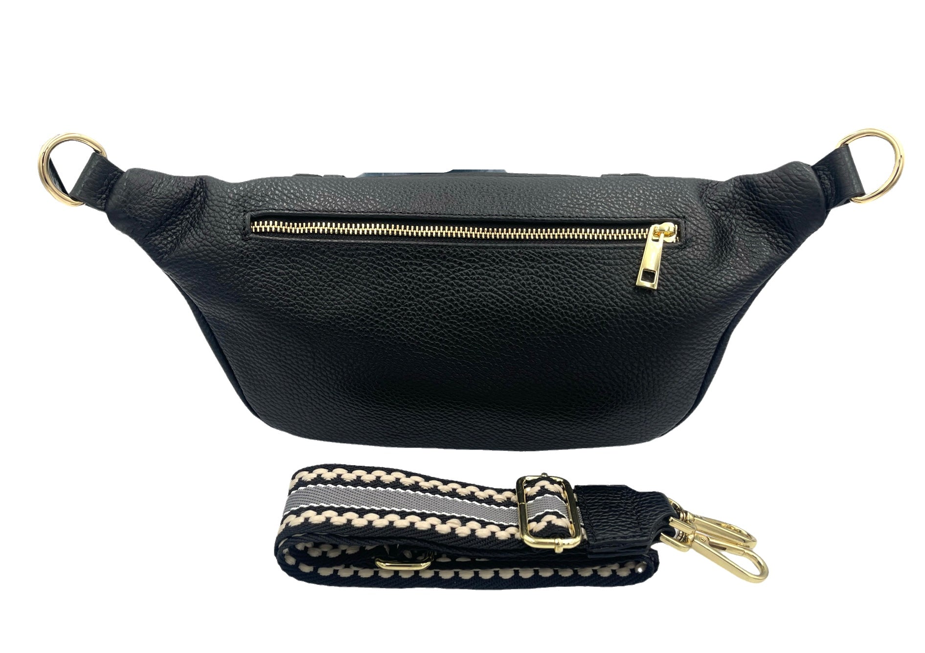 Sling Bag - large black sling with cream and black strap